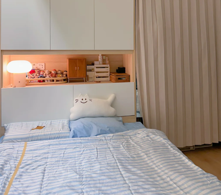 建议大家尽量不要在床头摆放过多的毛绒玩具,特别是一些布置来源的劣质毛绒玩具,