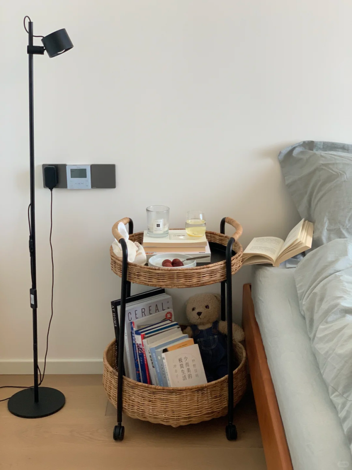 大家觉得卧室的床头柜以及床头的置物架就是用来放置物品的,